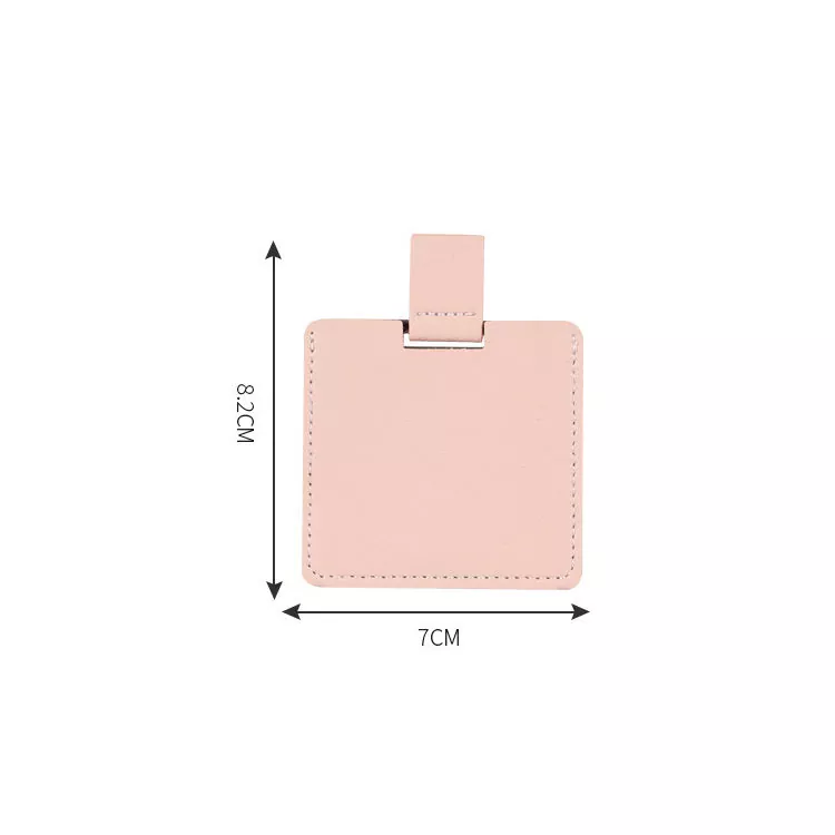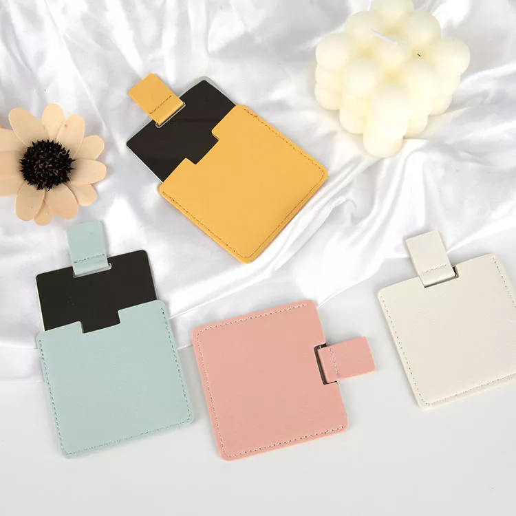 Dieser Taschenspiegel im Kreditkartenformat verfügt über einen weichen PU-Lederbezug und eine bruchsichere Edelstahloberfläche. Sein schlankes, tragbares Design passt problemlos in Brieftaschen oder Taschen und ist ideal für Ausbesserungen unterwegs. Anpassbares Logo und Farben machen es perfekt für Geschenke oder Branding.