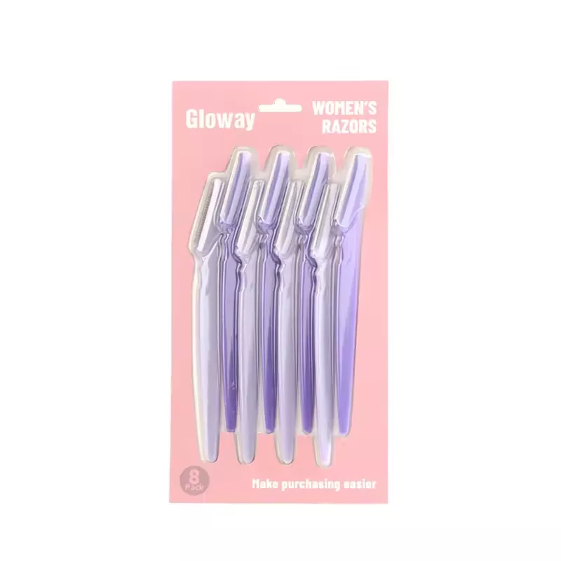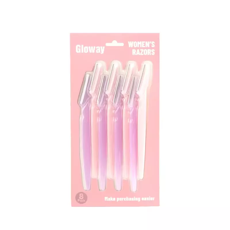 Erzielen Sie zu Hause eine präzise, schmerzfreie Augenbrauenpflege mit den GLOWAY Augenbrauenrasierern für Damen. Entworfen mit feinen, hautfreundlichen Edelstahlklingen, formt es sanft Augenbrauen und entfernt feine Gesichtshaare ohne Reizungen, ideal für empfindliche Haut. Der schlanke, ergonomische Kunststoffgriff bietet einen bequemen, rutschfesten Griff für einfache Kontrolle. Es ist in sanften Pastellfarben-Sets (8er-Pack) erhältlich und wird in einer tragbaren Verpackung geliefert, die sich perfekt für Reisen und tägliche Ausbesserungen eignet. Ein unverzichtbares Beauty-Essential für mühelose Ergebnisse in Salonqualität jederzeit und überall.