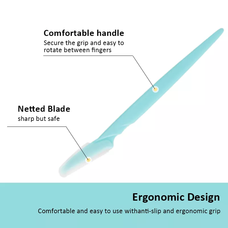 Die Areolae -Oberfläche auf der Schneide und die kleinere Größe dieser Gesichtsrasierer für Frauen Gesicht ist sanft genug, um den Pfirsichfleisch zu entfernen und ein präzises Dermaplaning -Erlebnis zu bieten. Diese Gesichtsrasierer für Frauen eignen sich auch hervorragend für die Bildung von Augenbrauen und die Haarentfernung für Ihren Körper und bieten eine vielseitige Lösung für alle Ihre Haarentfernungsbedürfnisse.